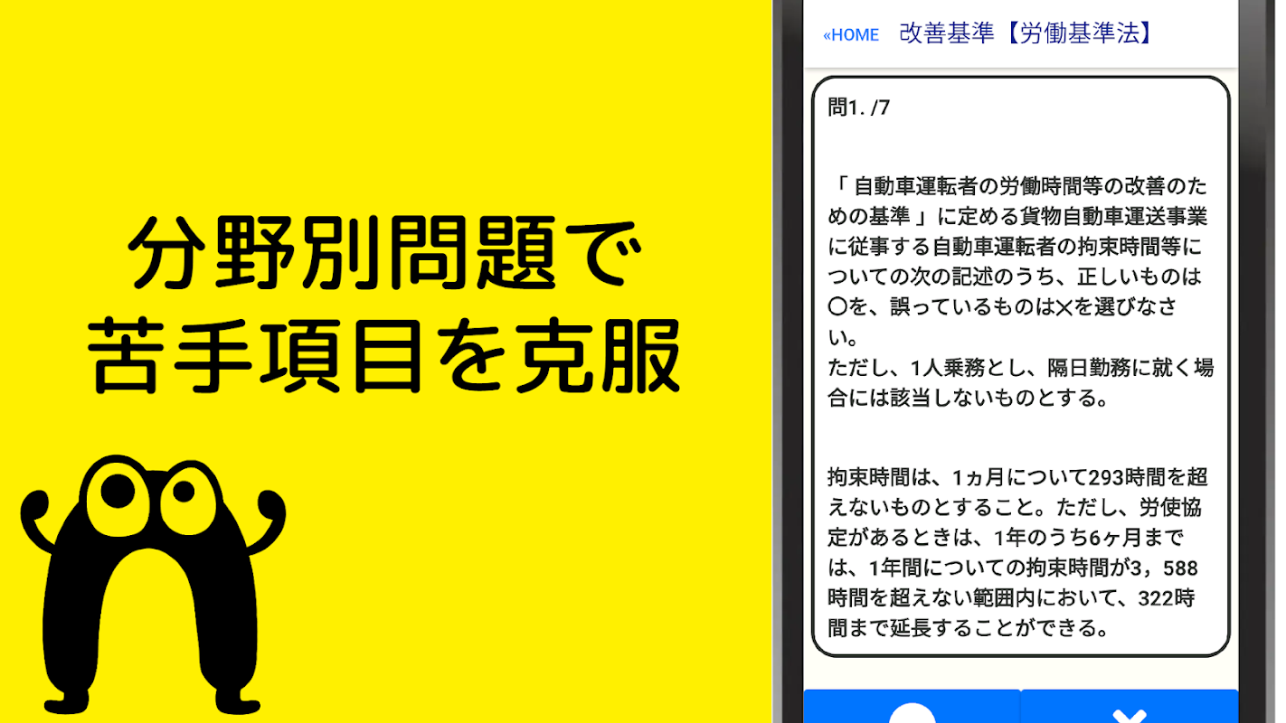 \\運行管理者(貨物)分野別問題アプリで、スピード合格!/