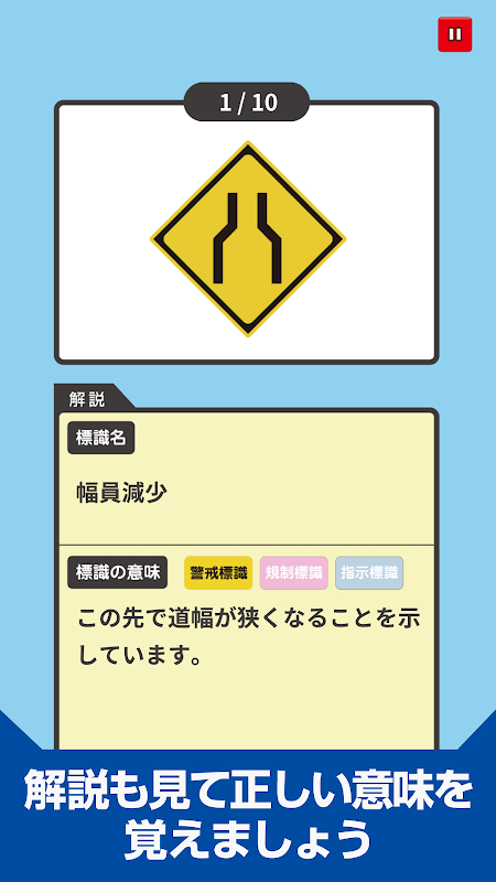 道路標識クイズ -運転免許取得や交通安全のお供に- APK 情報