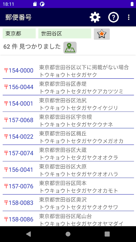 検索した郵便番号をお気に入りリストに登録したり削除したり出来ます。
