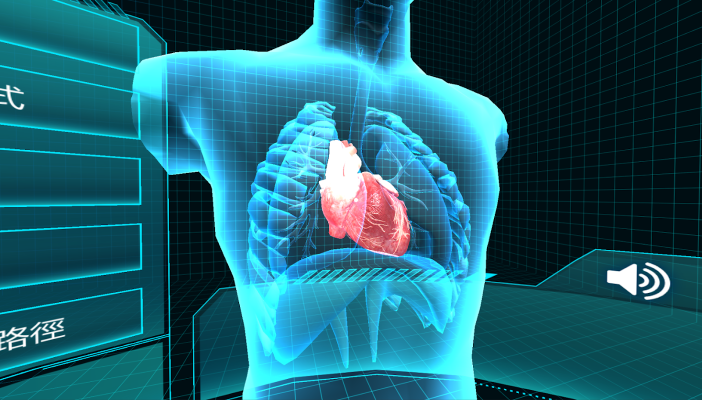 以虛擬實境(VR)教材呈現心臟位置及各部位構造、心臟收縮運作模式、心臟內部循環路徑、心臟各部位構造。
