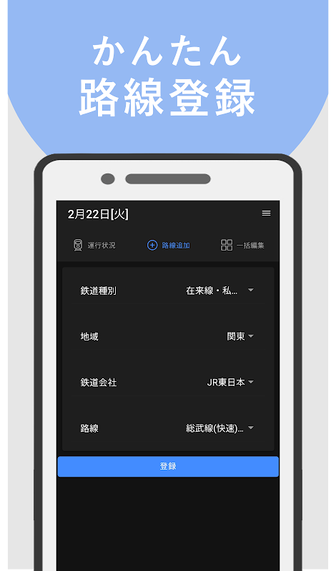 鉄道の運行情報をリアルタイムで確認できるアプリです。