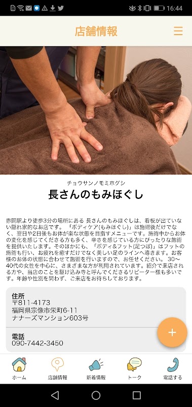 アプリを通して「長さんのもみほぐし」の新着情報やお得な情報をリアルタイムで受け取ることができます。