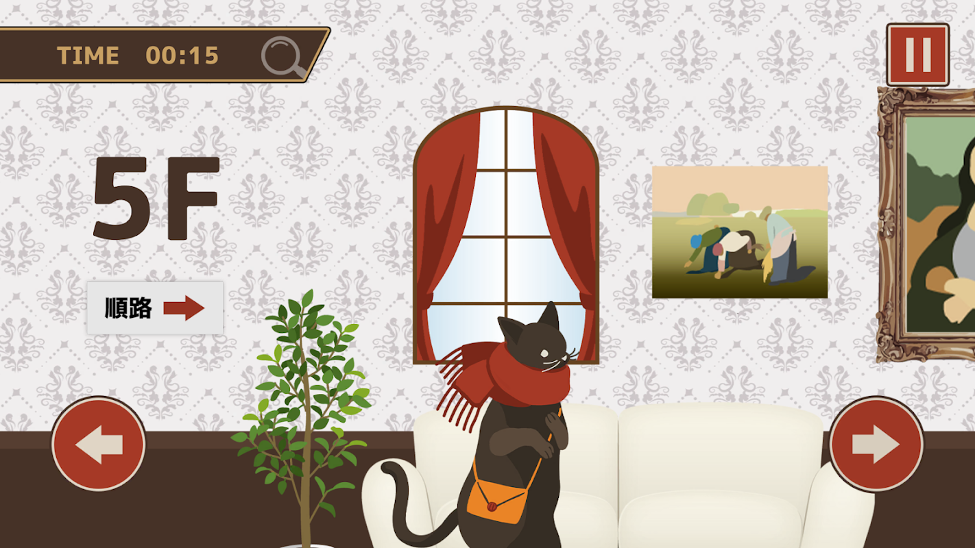 ミュージアムの建物内で、2種類の違う箇所を見つけて正しい状態に直し、脱出を目指す簡単ゲーム!