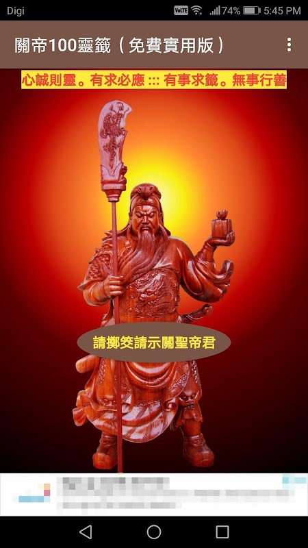 本中文正體字/繁體字100籤詩簡單易懂,還有普通白話解說,一看就明白。如果你遇事卻無法到祠廟裡求籤,必然心急如焚。請下載這款手機應用程式隨身備用,即可隨時隨地求籤,趨吉避凶。