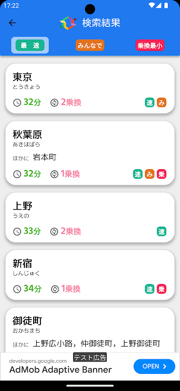 それぞれの出発駅から集まる駅をオススメするアプリです。