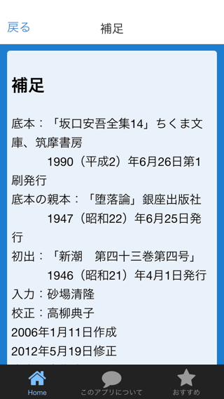 青空文庫 堕落論 坂口安吾の読み物アプリを作りました。