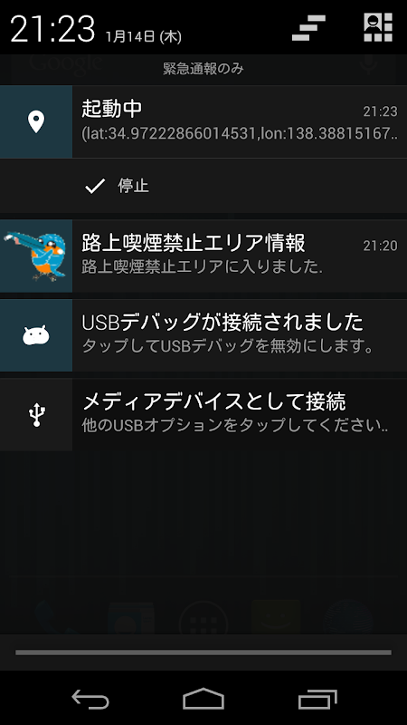 現在位置が静岡市の路上喫煙禁止エリア内であるかを監視・通知するアプリケーションです。静岡市のオープンデータ「路上喫煙禁止エリアマップ」を使用しています。
