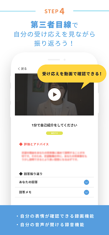 会員数10万人超の就活メディア監修!新卒向けの就活に特化した面接練習アプリ!本番さながらの面接練習と、面接でよく聞かれる質問の対策をすることができます。