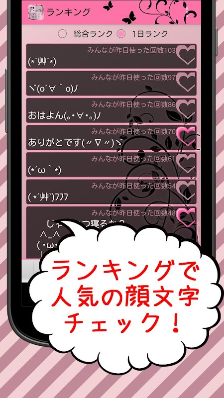★ランキング機能付き! みんなの顔文字で人気のあるものをランキング!(毎日更新されるよ!)