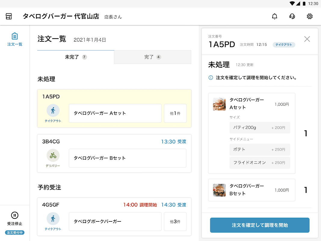 食べログが提供するテイクアウト注文、決済サービス「食べログテイクアウト」に掲載しているお店専用の注文管理用アプリです。