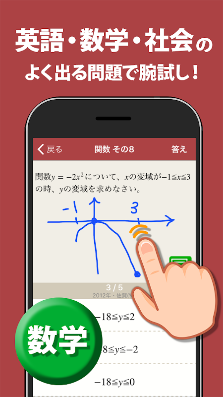 よく出る!このアプリ1本で英語・数学・社会の重要基本問題をチェック! 中学生必見!狙い目の問題には高校入試・高校受験に必要なポイント解説付き!