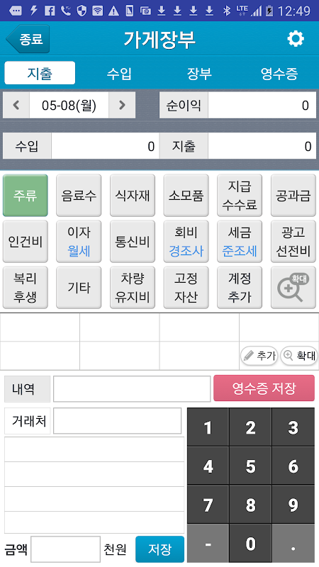 그 날의 수입과 지출을 가게장부에 입력하면 순이익이 즉시 파악됩니다