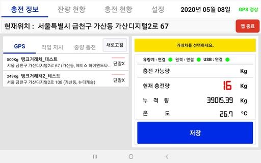 LPG 벌크로리 차량에 설치되어 차량의 금일 가스 충전 이력을 확인할 수 있는 어플리케이션이다. 또한 현재 위치를 기준으로 가까운 ' 탱크들의 리스트를 출력하여 잔량을 확인할 수 있다. 또한 카카오내비 및 Tmap 내비를 연동하여 내비게이션 기능을 수행한다.