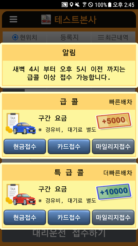 手軽に呼び出すことができる慶南統合代行運転の顧客向けのアプリです。