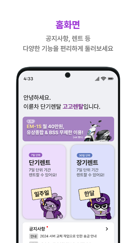 Gogof Andyは、二輪車のレンタルと保険、電気二輪車の供給まで可能なTotal Service Providerです。独自技術とノウハウで業界のリーダーになることを目指し、モビリティレンタル市場に革新を起こしています。