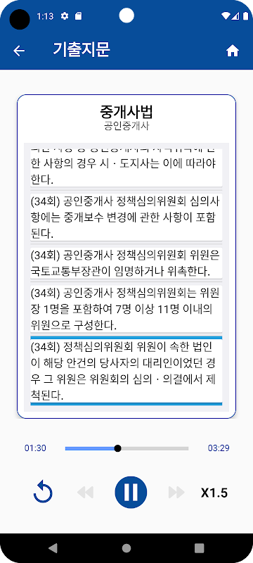 2. 공인중개사 시험 기출 지문 듣기 기능 탑재