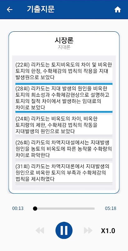 本当に正確に覚えているのか、覚えたような感情的な感じなのかは、問題を解決しなければ確認できません。正しい指紋は正しい指紋が原文のまま載っており、間違った指紋はどこがどのように間違っているのかという表示になっており、概念を理解し暗記するのにどこに重点を置いて勉強しなければならないのか、問題を出題する際に出題者がどの部分にどのような罠を売るかを一目で把握できます。テーマ別に得点の現状も確認でき、自分がどれくらい暗記になったかを確認でき、あまり覚えていない指紋、重点的に見なければならない指紋はチェックしておいたが、チェックした問題だけを集めて解くことができる機能があるので、OEXクイズ100点が出るときまで繰り返し学習してみてください。