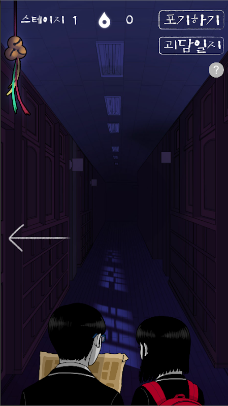 갇힌 학생을 열쇠 구멍으로 들여다보는 붉은 눈.