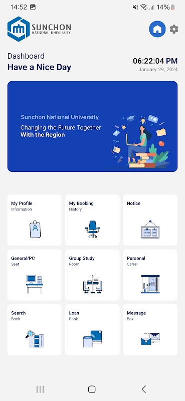 簡単な書籍管理と座席予約で大気のない読書スペースを提供する国立順天大学モバイル図書館アプリです。