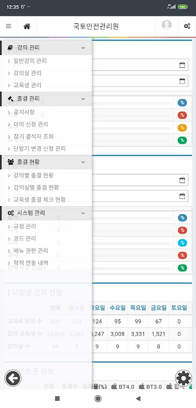 관리자용 국토안전관리원 출결관리 App 입니다.