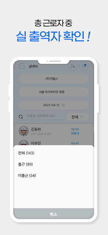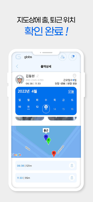 Glabs Location-based time and attendance management service that basically manages workers' arrival and departure