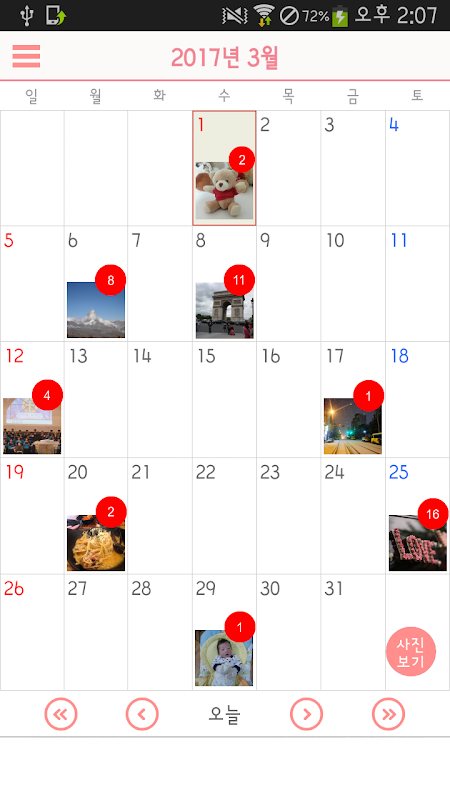 写真をカレンダー形式、フォルダごとに見ています。写真ごとに簡単なメモもできますよ。入念に写真管理してください