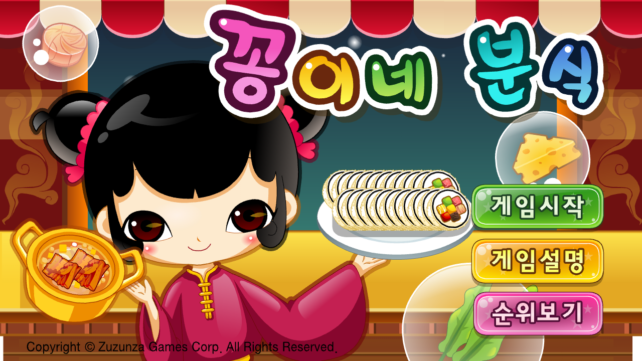 라면과 김밥을 만드는 분식점 타이쿤 게임입니다.