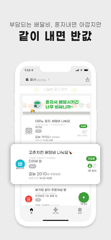 그래서 저희 "나눌분"은 배달비 나눔을 시작으로 나눔 커뮤니티 서비스를 시작했어요.