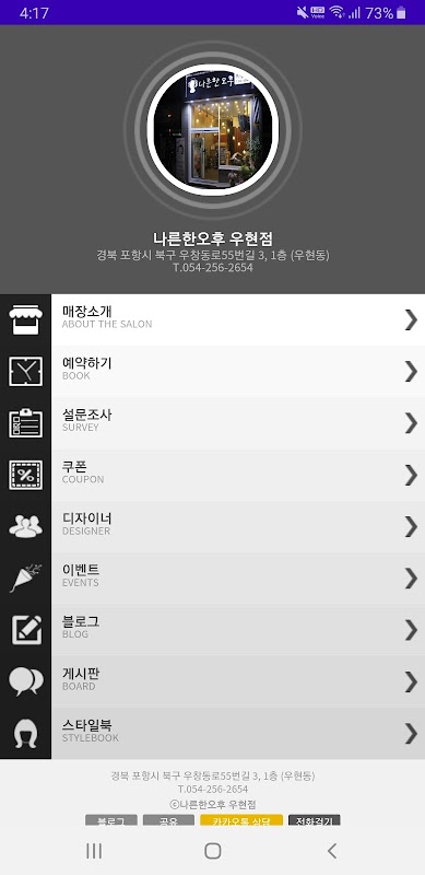 예약과 이벤트 확인및 매장정보 확인이 가능합니다