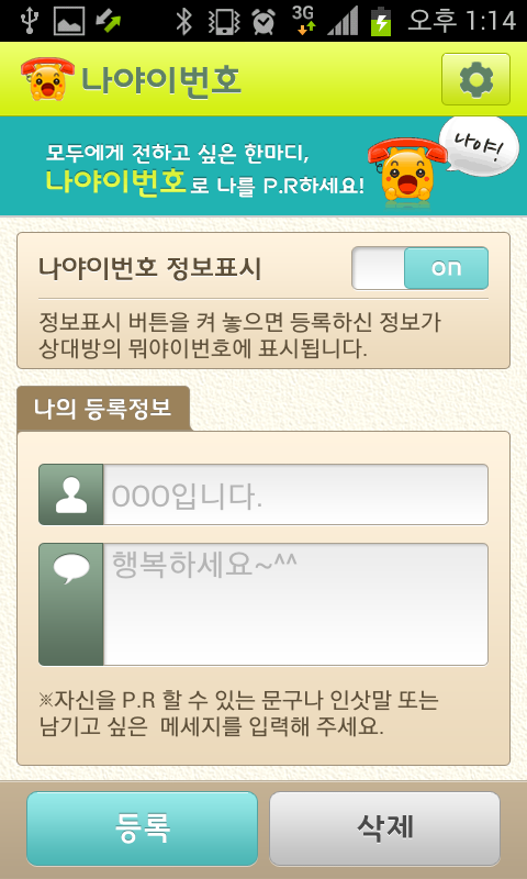 나야이번호에서 입력한 정보는 상대방의 뭐야이번호(Ver1.24이상)에 연동되어 표시됩니다.