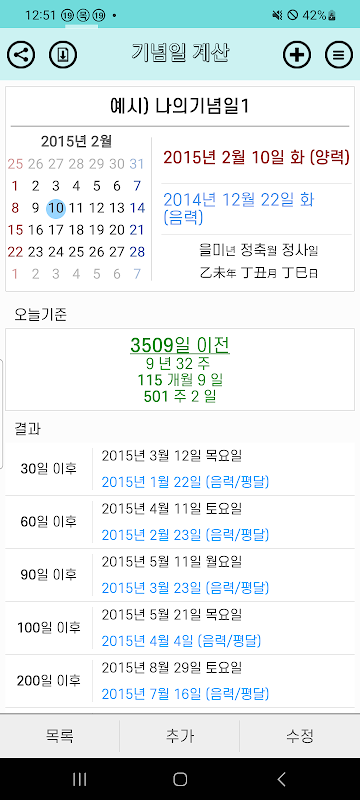 - 記念日の計算(旧暦、+30、+60、+100、+200、...)
