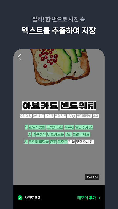 パチパチ!一度に写真の中のテキストを抽出したり、音声をテキストに変換してより楽に記録することができます。