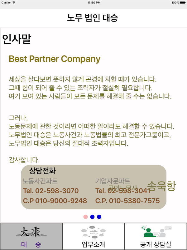 한국사회의 노동분야에서는 다양한 문제들이 발생되고 있습니다. 특히 기업노사관계, 노동조합, 노동청진정고소, 임금체불, 산재사고, 부당해고, 부당노동행위 등의 노동분쟁에는 반드시 그 답이 있고, 노동사건과 노동법률의 전문가 그룹인 노무법인대승은 그에 합당하는 해답을 제시하고 반드시 해결점을 도출하고 있습니다.