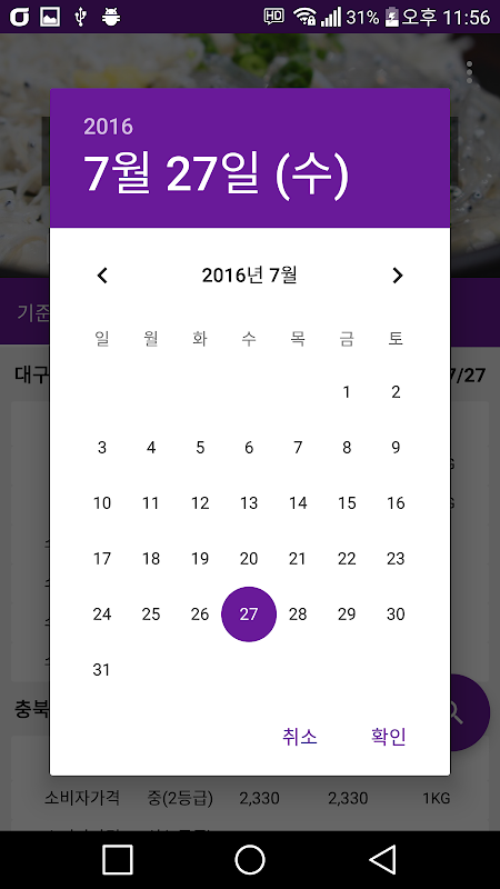 1.指定された日付、1日前、7日前、1ヶ月前の順で簡単に簡単に農産物、畜産物、水産物の消費者価格と小売価格を確認することができます。