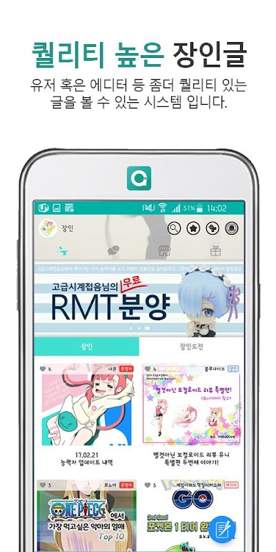 엄선된 장인들의 훌륭한 컨텐츠들을 만나볼 수 있습니다. 또한 나만의 재능을 보여줄 수 있는 장인 도전 페이지도 항시 대기중!!