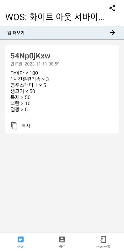 「WOS:ホワイトアウトサバイバル」のクーポンを確認してコピーすることができます。