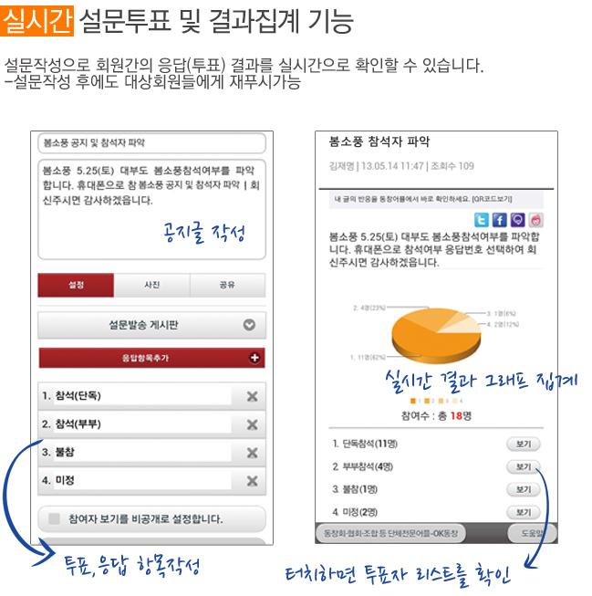 5. 스마트폰으로 행사참석여부등 설문, 투표 결과를 실시간 집계하고 항목별 응답자 현황도 확인할 수 있습니다.