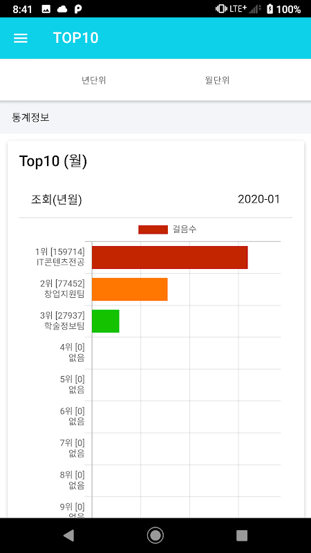 * 순위기능 : 사용자 상위 10명의 걸음수를 제공하여 나의 현재 운동량을 비교할 수 있도록 하는 기능