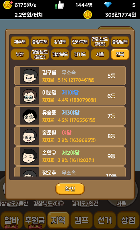 自動的にお金が集まるの利点クルジェム育てる宝石! Wi-Fiがなくても行うことができるシングルゲーム! 前作を超える楽しさの大統領選挙のゲーム大統領育てる2!