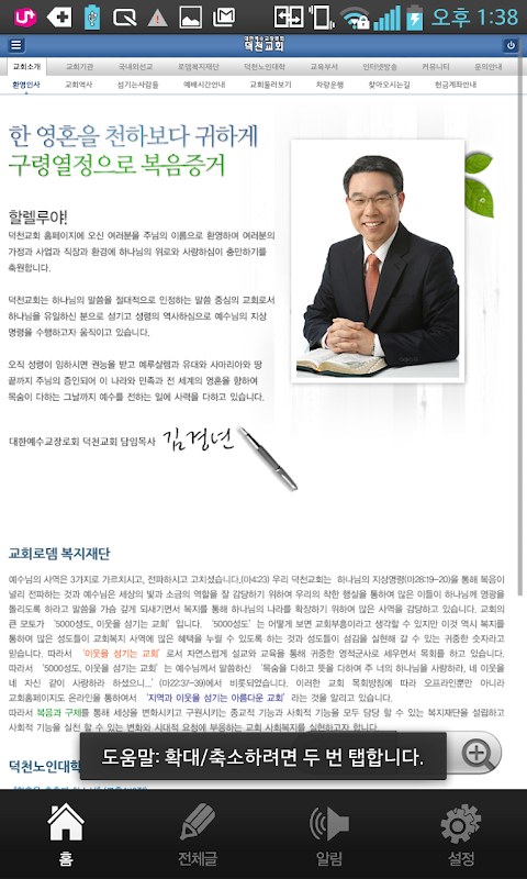* 100% 연동형 앱 : 홈페이지에 등록된 내용, 게시물, 설교영상, 사진 등의 콘텐츠를 앱과 100% 연동하여 실시간으로 앱을 통해 확인할 수 있습니다.