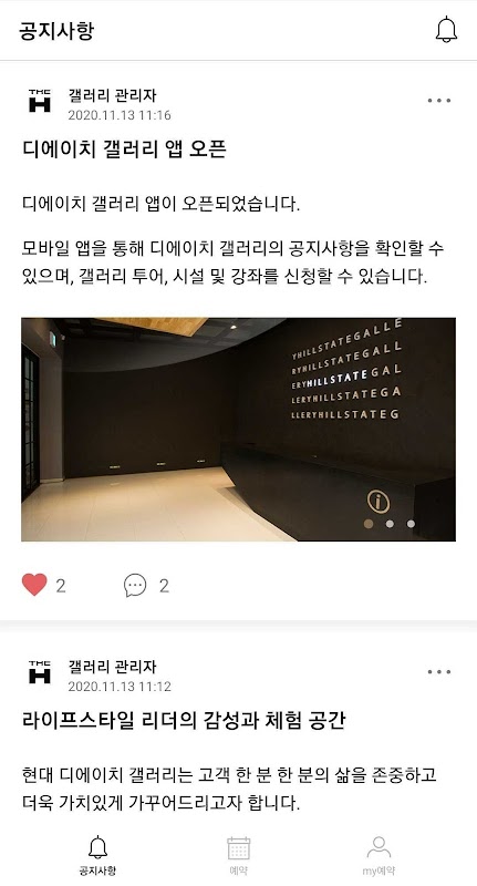 1.お知らせ:ディエイチギャラリーのお知らせを確認することができます。