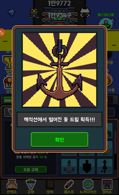 모은 광석으로 드릴의 장비를 업그레이드 해보세요
