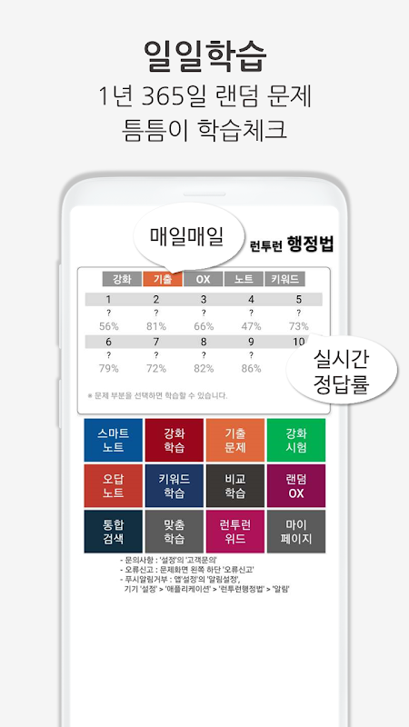 행정법 기출문제에서 꼭 알아야 하고, 외워야 할 필수 핵심 개념들로만 제작되었습니다. 언제 어디서나 쉽고 편하게 앱으로 학습하시는 동안 행정법 시험 목표 점수에 도달하실 수 있을 것입니다.