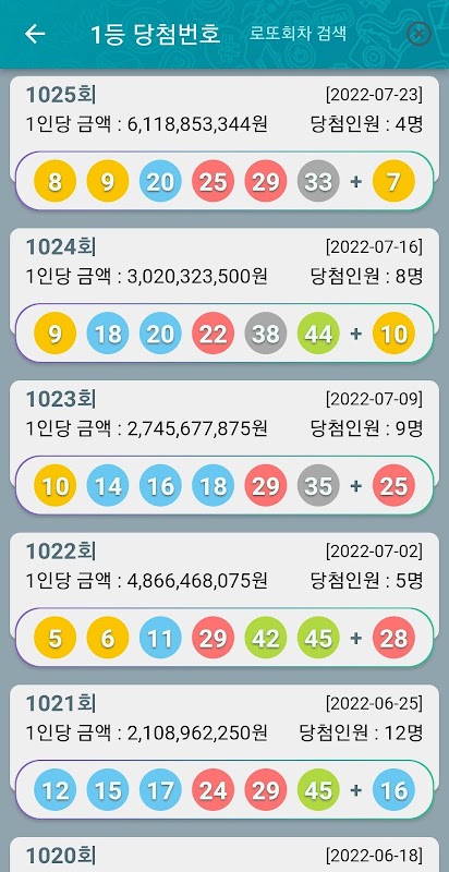 * 각 회차별 로또 당첨 번호를 확인 할 수 있습니다.