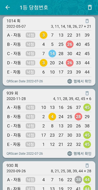 로또 용지의 QR 코드를 통해 당첨 확인을 쉽게 확인 할 수 있습니다.