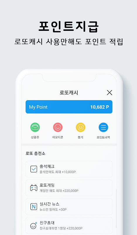 * 포인트를 통해 구글플레이상품권, 편의점상품권, 문화상품권등 다양한 상품권을 무료로 얻을 수 있습니다.