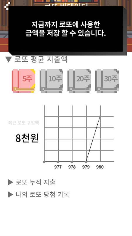 - 最近回目を基準に各種の統計情報を提供してい(番号の出現星、すすり、高低、合計、先端スハプ、色の統計など)