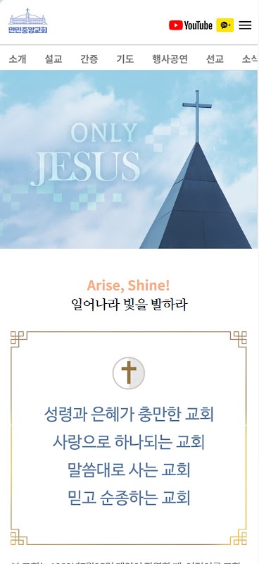 本教会は、1982年7月25日、太陽が灼熱したとき、子供を含む合計13人の聖徒が開拓礼拝をささげました。その年10月10日、五穀がムルイックになると、約170人余りの聖徒と共に創立礼拝をささげました。復興に復興を重ね、2000年1月1日、万民テレビの設立と2005年に本教会創立23周年を迎え、GCN放送(世界クリスチャン放送ネットワーク)を開国し、現在、全世界を網羅するネットワークを通じて創造主の神様とイエスキリストの福音、聖霊の働きを活発に伝えています。