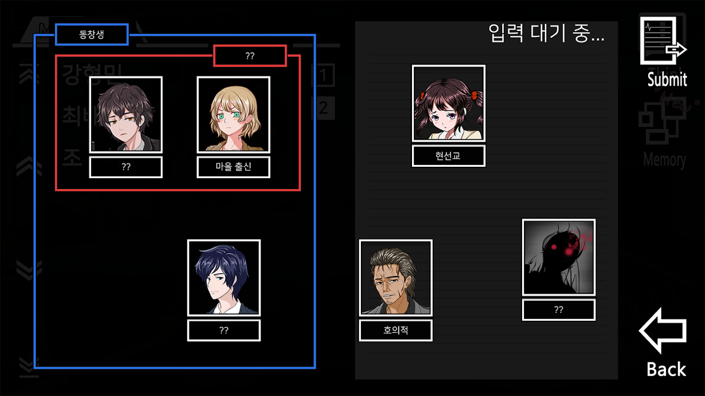 ストーリーを進行し手がかりを獲得して、獲得した手がかりを組み合わせて、次のストーリーを進行するビジュアルノベルゲームです。