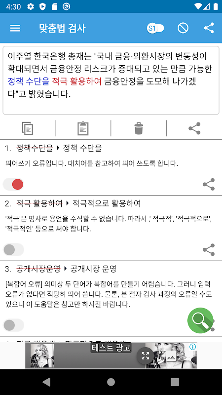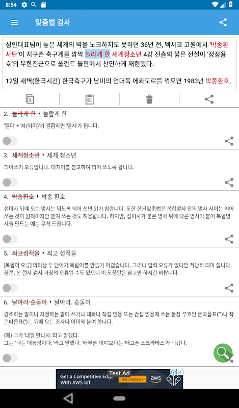 ハングルのスペルチェッカー、スペース、文法校正機能